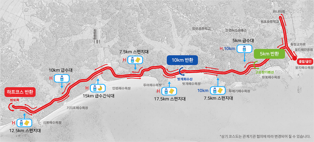 경기의 코스는 아래의 사진과 같이 5키로, 10키로, 하프코스로 진행되며