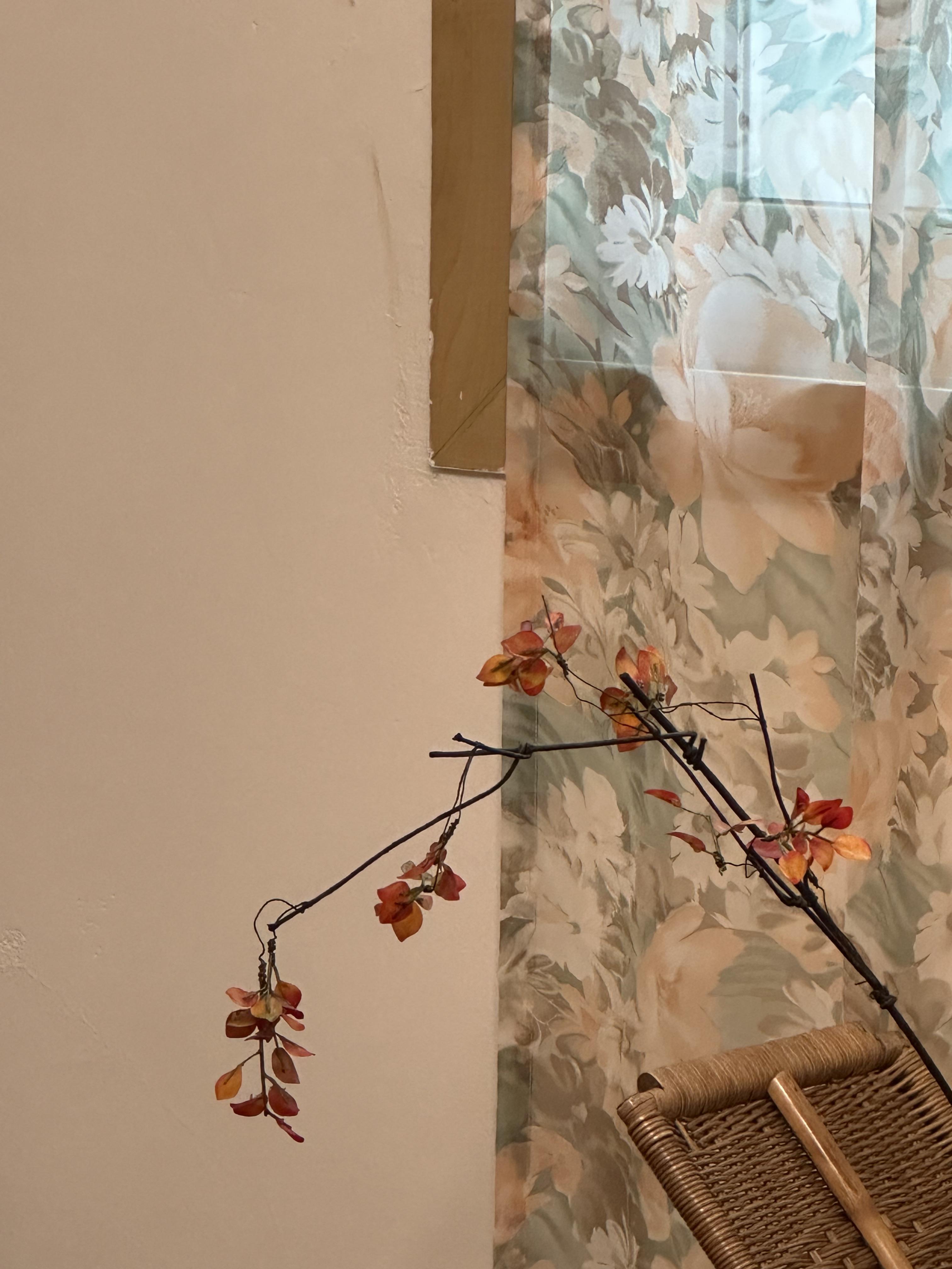 이쪽이 오른쪽 모서리로 갈수록 레트로한 느낌 이곳이 왼쪽에 위치한 공간 작은 거울과 엔틱한 월넛색상의 상과 의자들
