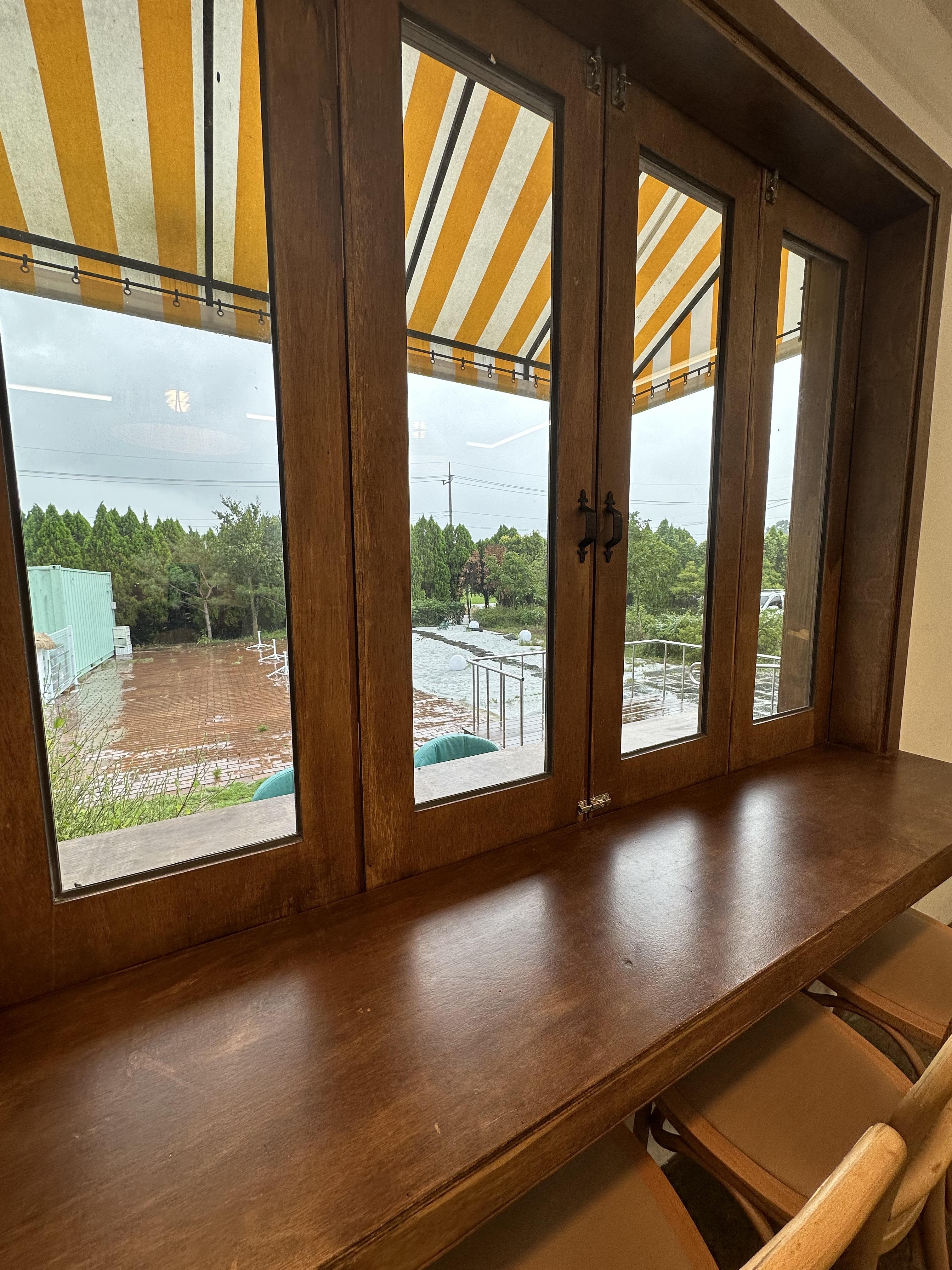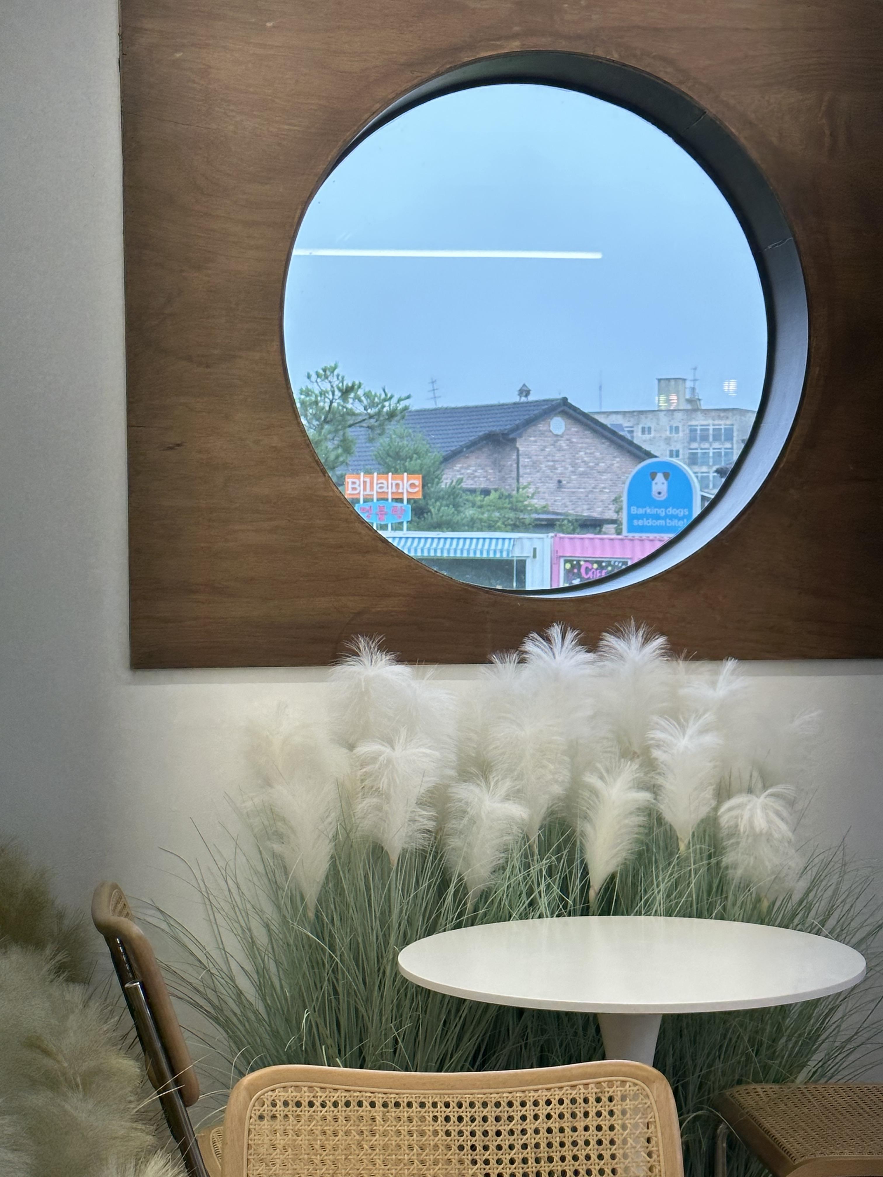 오른쪽 방의 의자는 조금 모던함 비를 구경하며 시간을 보낸후에 우리가 시킨 아이스 아케리카노가 나왔다.