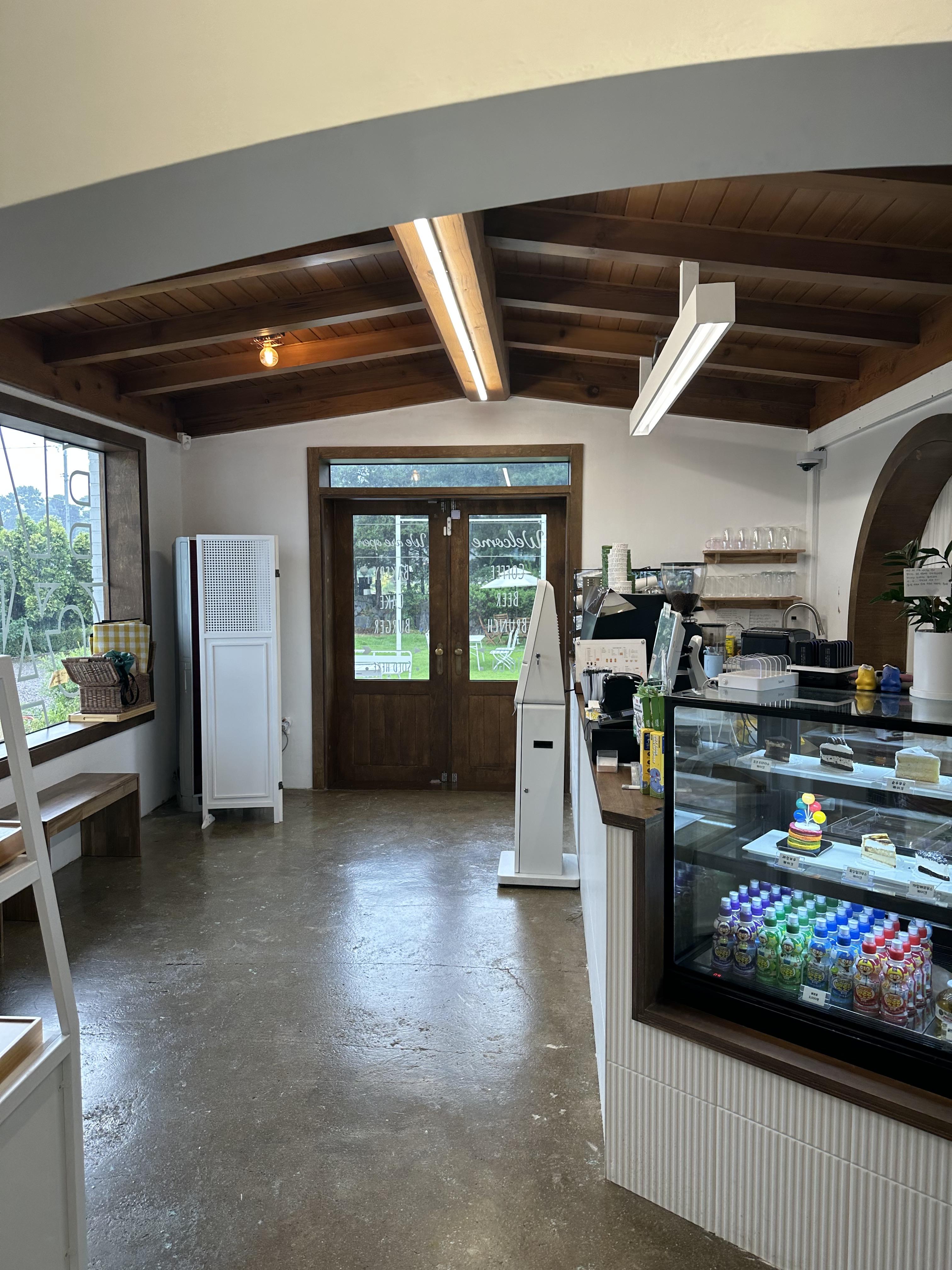 내부로 들어가자 마자 보이는 목조 천장과 주문 받는 곳 키오스크로만 주문 가능하다.